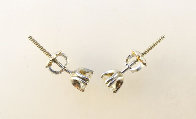 LOT 75 Near Pair of 14K (Clasp Marked) White Gold Screw Back Diamond Studs TW:0.84 Grams. Estimate: $300 - $400 Sold For: $400 Auction Date: Tuesday, July 19 2022 at 6:00 PM