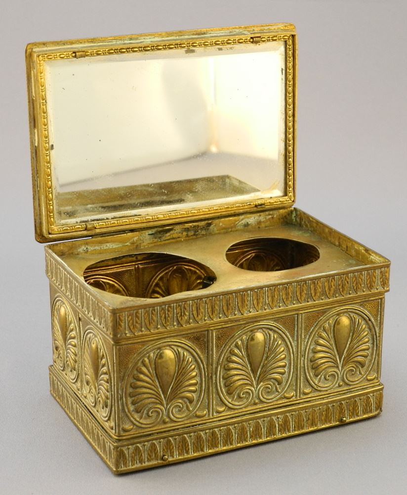 LOT 9 Neo Classical Design Brass Music Box. Estimate: $80 - $120 Auction Date: Tuesday, September 27 2022 at 6:00 PM