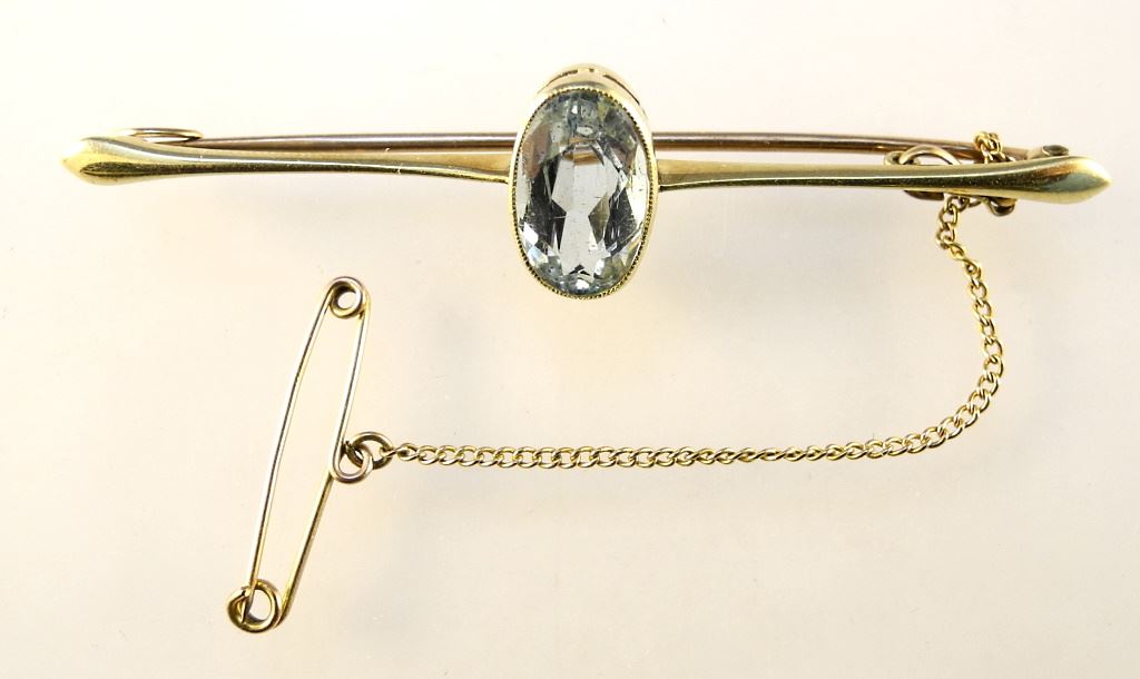 18K Yellow Gold & Aquamarine Brooch.