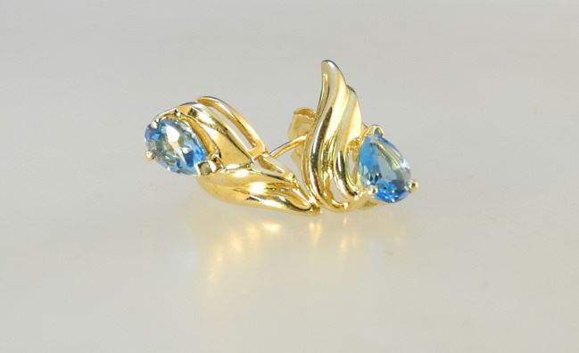 Pair of 14K Yellow Gold & Blue Topaz (5 x 7mm) Earrings.