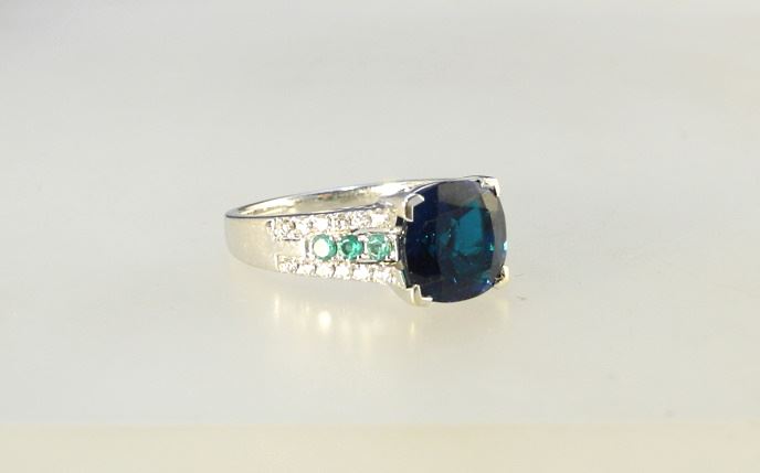 14K (Marked) White Gold & Synthetic Emerald Ring, Size 7, TW:4.71 Grams.
