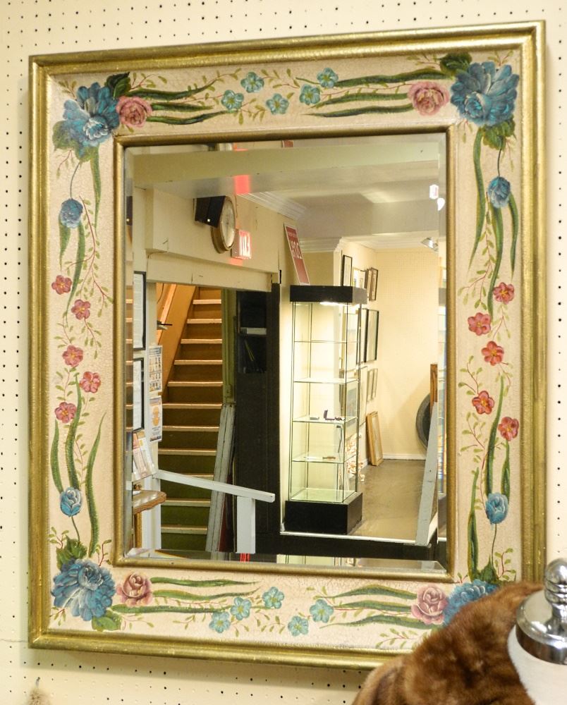 Pair of Stepped Giltwood Mirrors with Floral Borders, 39" x 33" x 2 3/4".