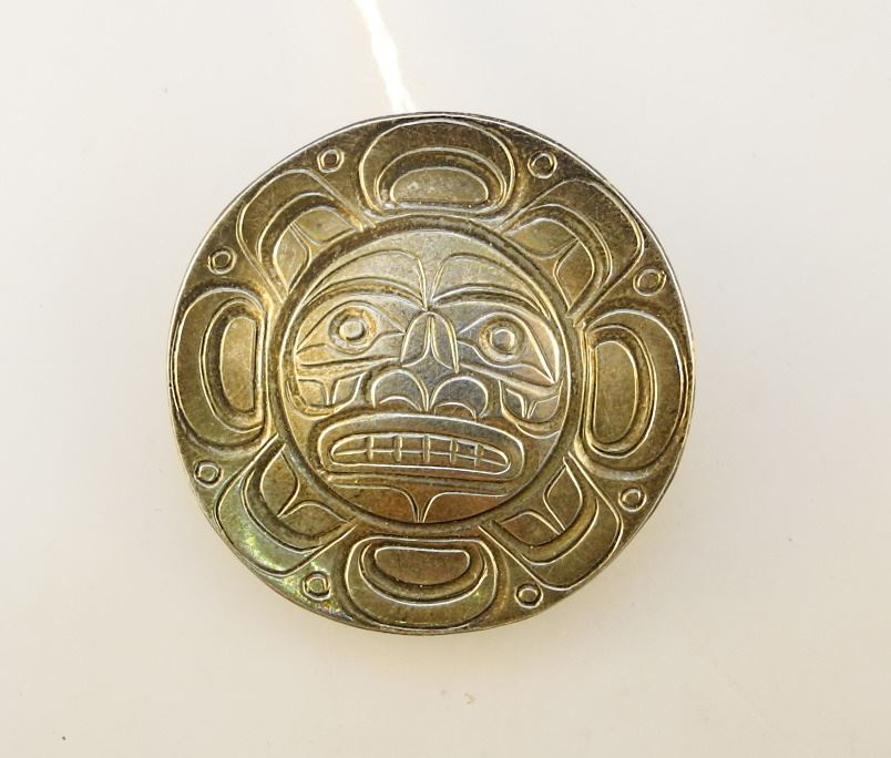 LOT 255 Kwagiulth Sun Brooch signed D.L.L. (Don L. Lancaster), 1 1/2" diameter Estimate: $60 - $120 Sold For: $60 Auction Date: Tuesday, September 27 2022 at 6:00 PM