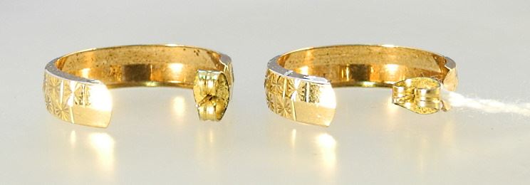 9Ct Yellow Gold Vintage English Textured Hoop Earrings, 1.9 Grams.