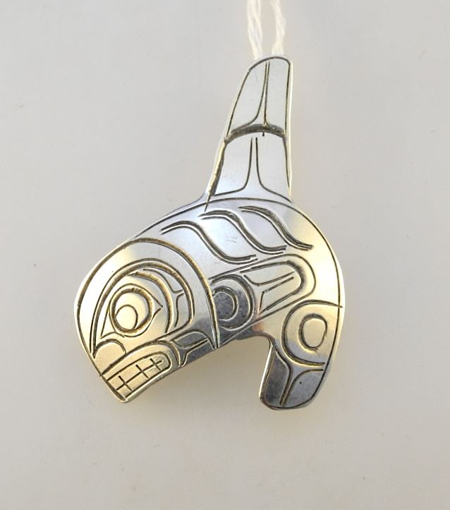 Kwagiulth Silver Orca Pendant Mono- grammed HL (Herb Lancaster), 8.4Gr.
