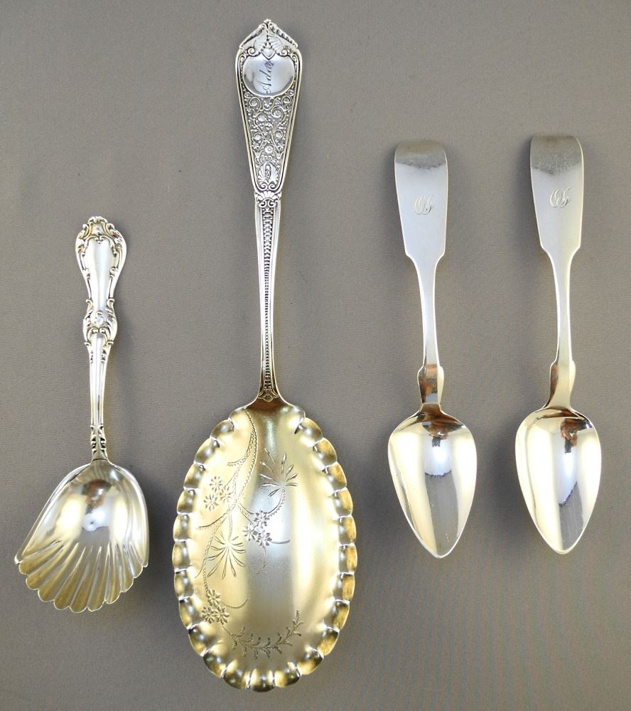 LOT 213 4 Sterling Silver Spoons, 9" length. Estimate: $75 - $125 Sold For: $56 Auction Date: Tuesday, September 27 2022 at 6:00 PM