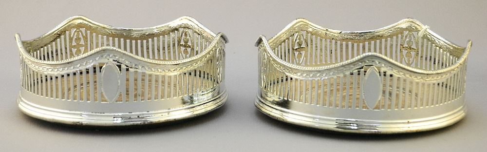 LOT 4 Pair of Silver Plated Wine Coasters, 1 7/8" x 5 1/8" diameter. Estimate: $60 - $100 Sold For: $84 Auction Date: Tuesday, September 27 2022 at 6:00 PM