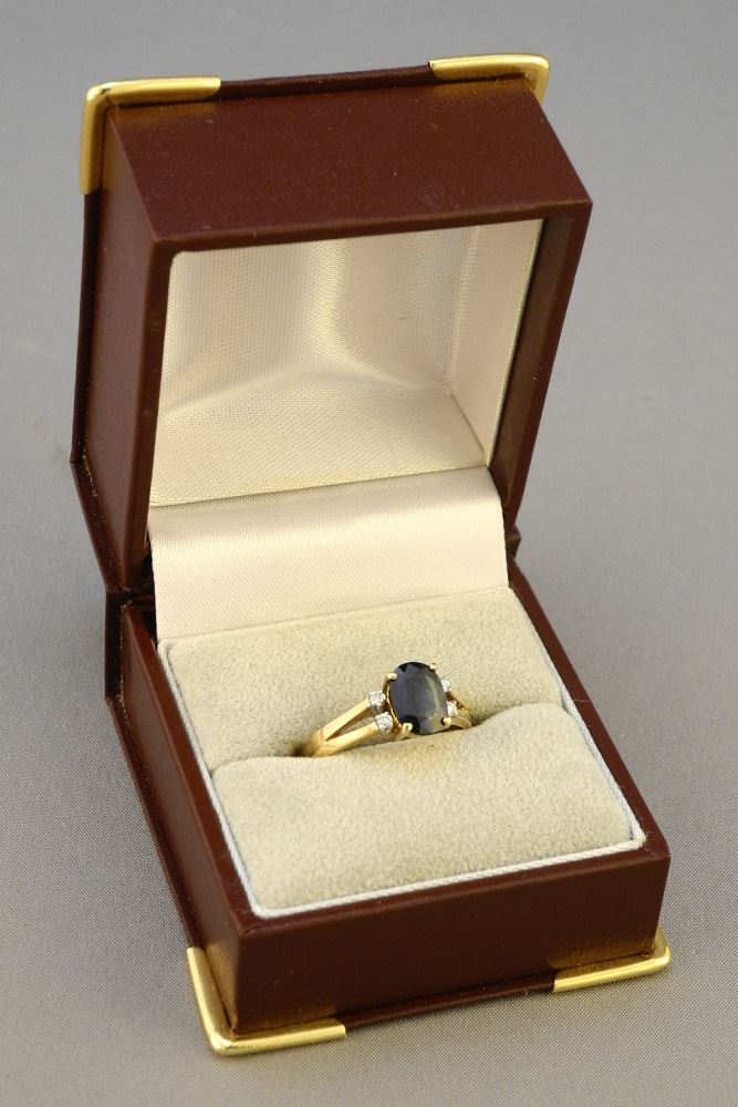 18K (Marked 750) Yellow Gold Sapphire & Diamond Ring, Size 6 3/4, TW:3.45 grams.