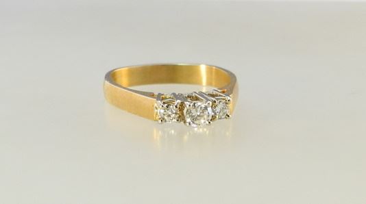 14K (Marked) Yellow Gold & White Stone Trinity Ring, Size 7 1/4, TW:3.96 Grams.