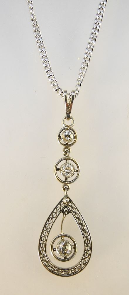 14K (Marked) White Gold Pendant on 14K (Marked) Gold Chain, 17 1/2", TW:4.99 Grams.