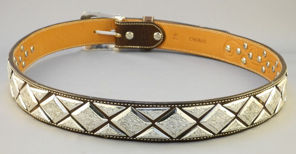 LOT 122 Tony Lama Leather & Silver Plate Gent's Belt, Size 38. Estimate: $60 - $100 Sold For: $110 Auction Date: Tuesday, December 06 2022 at 6:00 PM