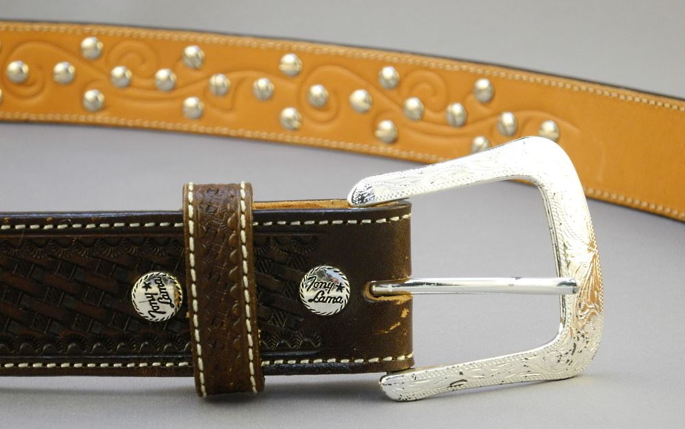 Tony Lama Leather & Silver Plate Gent's Belt, Size 38.