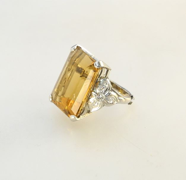 18K White Gold (Marked) 26.88Ct Citrine & Diamond Ring.