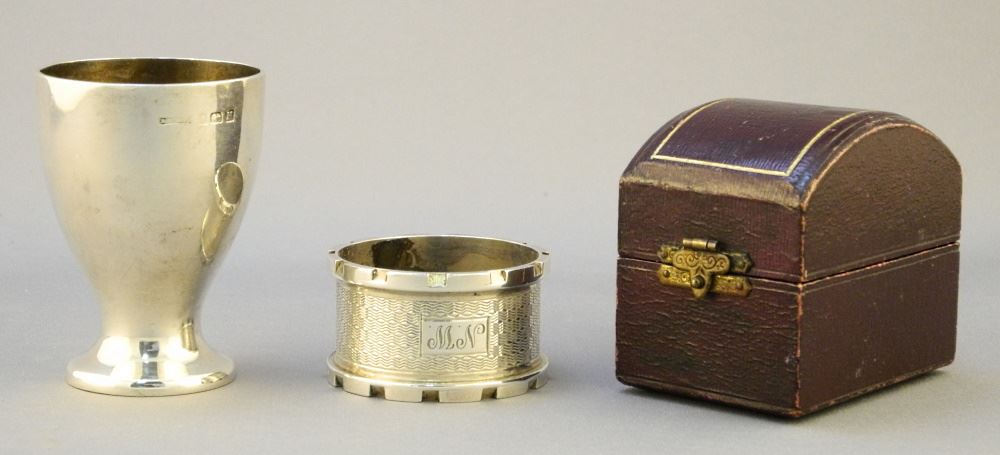 Sterling Silver Napkin Ring with Box & a Sterling Egg Cup.