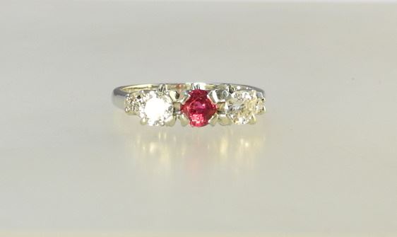 14K White & Yellow Gold Diamond & Ruby Ring, Size 6, TW:3.1 Grams.