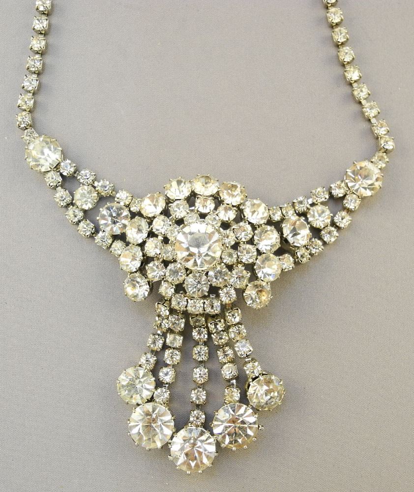 LOT 254 1950's Fashion Rhinestone Necklace Suite (5 Pieces). Estimate: $60 - $100 Sold For: $60 Auction Date: Tuesday, December 06 2022 at 6:00 PM