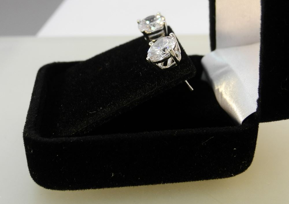 Sterling Silver 2 Ct Cubic Zirconia Earrings.