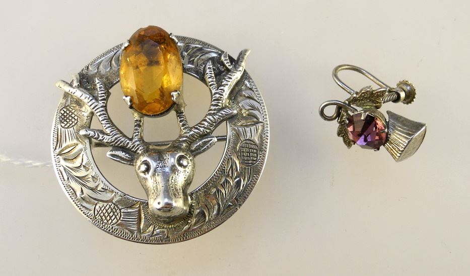 LOT 317 Hallmarked Scottish Sterling & Cairngorm Stag Brooch, 1 3/4" x 1 1/8". Estimate: $100 - $150 Sold For: $275 Auction Date: Tuesday, December 06 2022 at 6:00 PM
