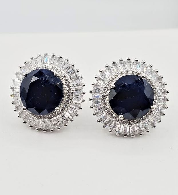 Sterling Silver Sapphire & CZ Earrings, Sapphire TW:10.40Cts.