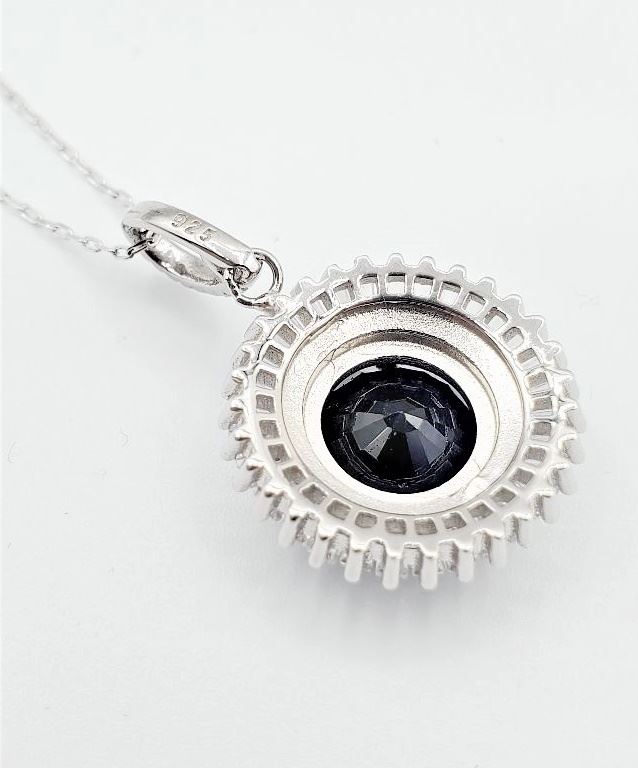 Sterling Silver Sapphire & CZ Pendant with Sterling Silver Chain.