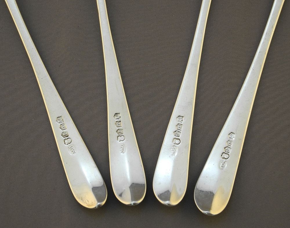 4 Scottish Silver Spoons: R.W., Edinburgh, 1799, 7 1/4" Length, 124 Grams.