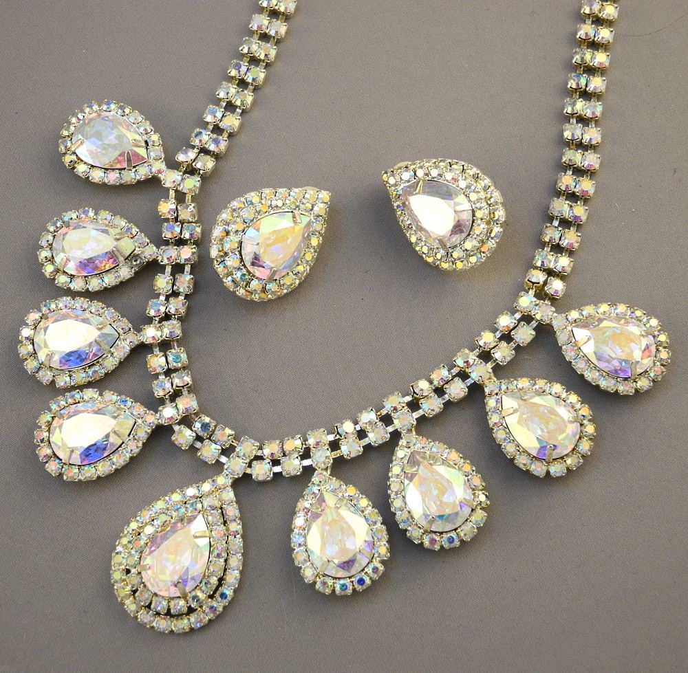 Costume Jewelry Necklace & Earrings, 19 1/2" L.