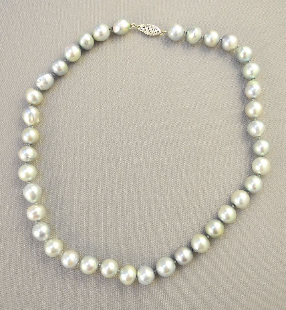 LOT 250D Pale Blue Cultured Fresh Water Pearls, Unmarked Clasp Approx. 9mm 1 4"L. Estimate: $100 - $150 Sold For: $70 Auction Date: Tuesday, March 07 2023 at 4:00 PM
