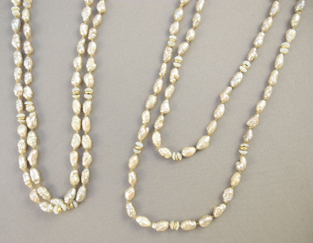 LOT 250A 2 Strands Grey Cultured Freshwater Pearls with Spacers, 36" L. Estimate: $80 - $100 Sold For: $40 Auction Date: Tuesday, March 07 2023 at 4:00 PM