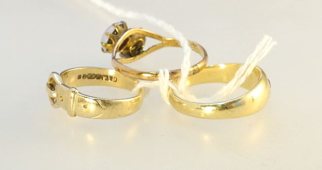 LOT 138 3 Gold Rings; 18K with Blue Stone/ Belt/ Double Opal unmarked. Estimate: $300 - $400 Sold For: $250 Auction Date: Tuesday, March 07 2023 at 4:00 PM