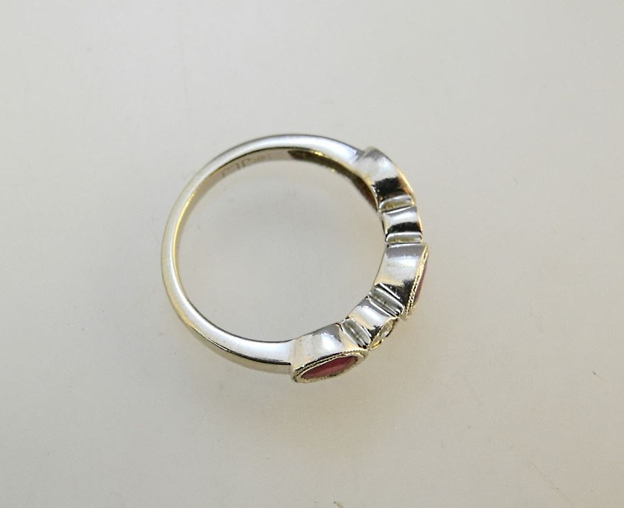 14K (Marked) White Gold Natural Ruby & Diamond Ring, Size 7, TW:3.7 Grams