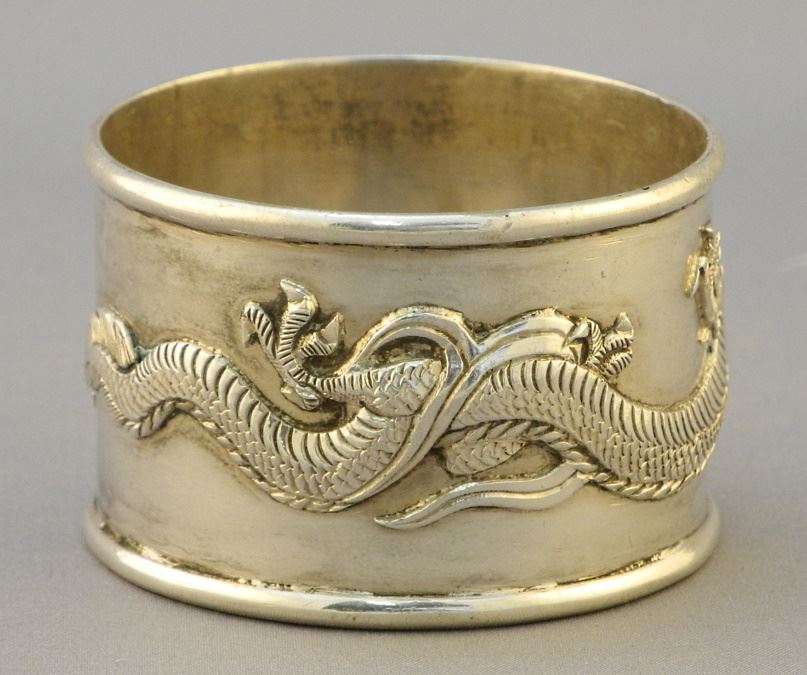 Chinese Export Silver Napkin Ring Marked WH (Wing Hing), 1 1/8" x 2 3/4"D, 38 Grams.