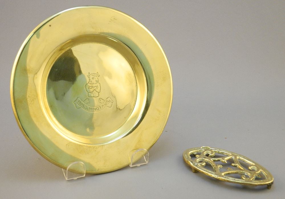LOT 30 H.M.S. Minotaur Brass Dish (6 1/8" D) & 2 Brass Shell Cases - 11 5/8" H. Estimate: $50 - $60 Sold For: $30 Auction Date: Tuesday, May 16 2023 at 4:00 PM