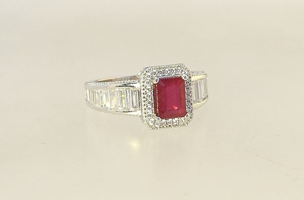 LOT 269 Sterling (Marked 925) Silver Ruby Style Ring with White Baguettes, Size 8 1/2. Estimate: $60 - $100 Sold For: $50 Auction Date: Tuesday, December 05 2023 at 4:00 PM