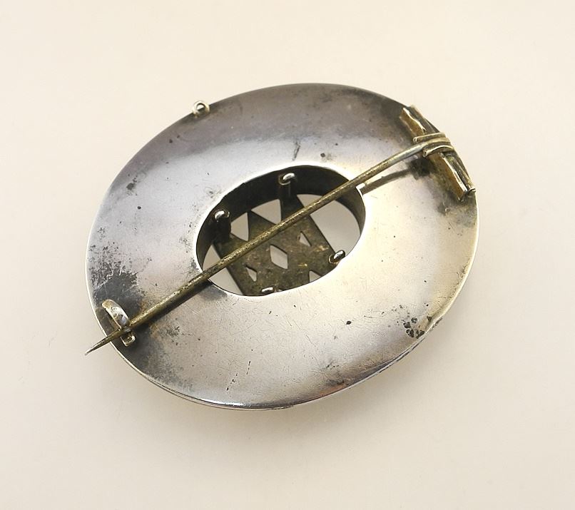19th C. Scottish Silver & Agate Brooch, 2 1/4"W, 37.5 Gms with Box.