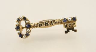 Unmarked Gold Tone Seed Pearl & Blue Stone Sorority Pin, Engraved with Name & 1-13-51, 2.64 Gms,