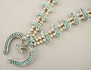LOT 158 Navajo Squash Blossom Necklace, Unmarked Silver & Turquoise, 24 1/2" L, 155 Grams. Estimate: $700 - $1,000 Sold For: $750 Auction Date: Tuesday, December 05 2023 at 4:00 PM