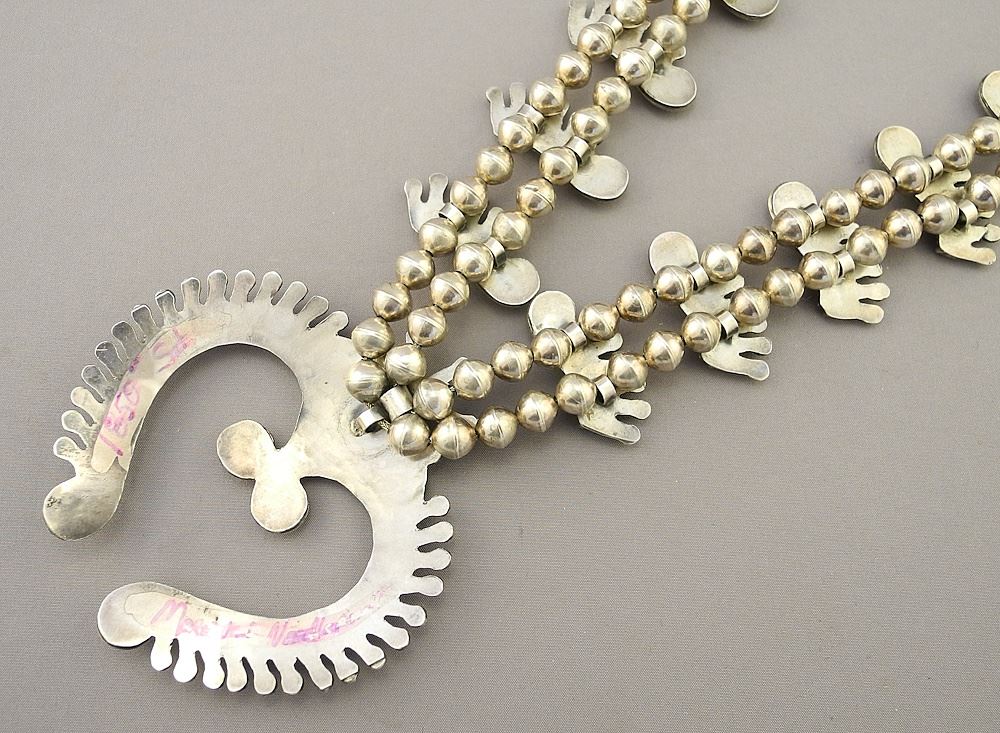 Navajo Squash Blossom Necklace, Unmarked Silver & Turquoise, 24 1/2" L, 155 Grams.