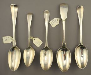 Collection of 18 & 19th C Hallmarked Silver 6 3/4 - 8 3/4" Cutlery Items: 5 Spoons, 2 Forks, 425 Gra