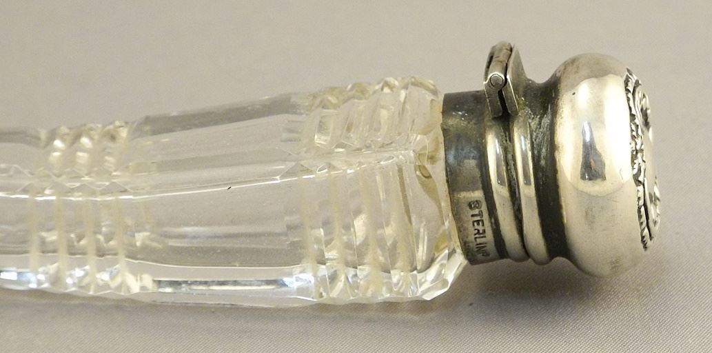 LOT 196 Sterling (marked) Silver & Crystal Scent Bottle with Stopper. Estimate: $60 - $100 Sold For: $70 Auction Date: Tuesday, December 05 2023 at 4:00 PM