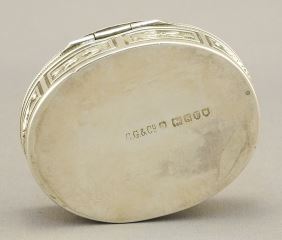 LOT 219 Oval Hallmarked Silver Box with Import Marks, CG & Co., 1 7/8"W, 19.25 Grams. Estimate: $100 - $180 Sold For: $120 Auction Date: Tuesday, December 05 2023 at 4:00 PM
