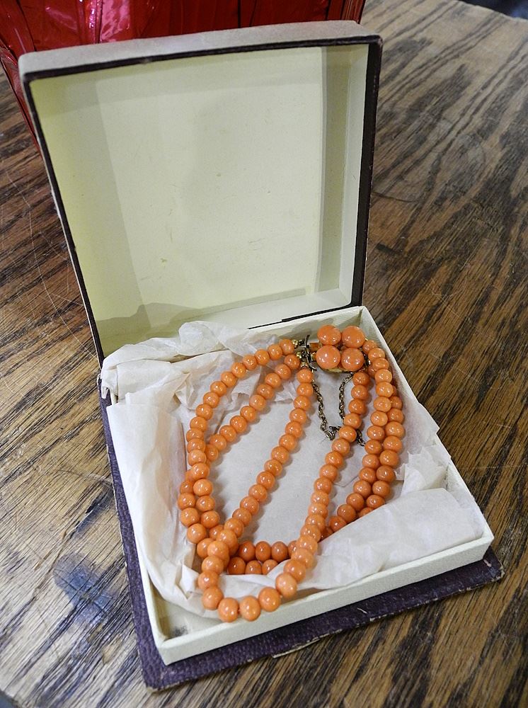 Antique Coral Bracelet with Gold Tone Clasp, 25 Grams, 7"L.
