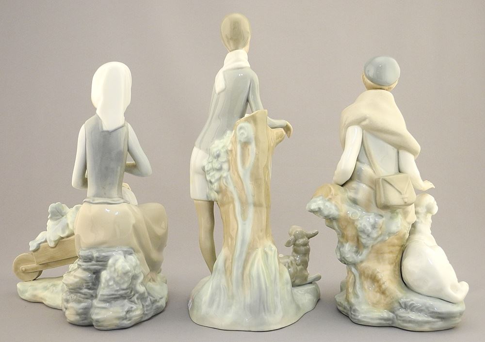 3 Lladro Shepherding Figurines, 9 1/8 - 11 1/8"H.
