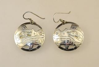 Pair of Kwagiulth Silver "Wolf" Earrings signed H. (Harold) Alfred, 6.59 Grams.
