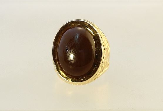 LOT 16 18K (tested) Yellow Gold & Saad Cabochon Ring, Size 10, 14.4 grams. Estimate: $800 - $1,200 Sold For: $800 Auction Date: Tuesday, December 05 2023 at 4:00 PM
