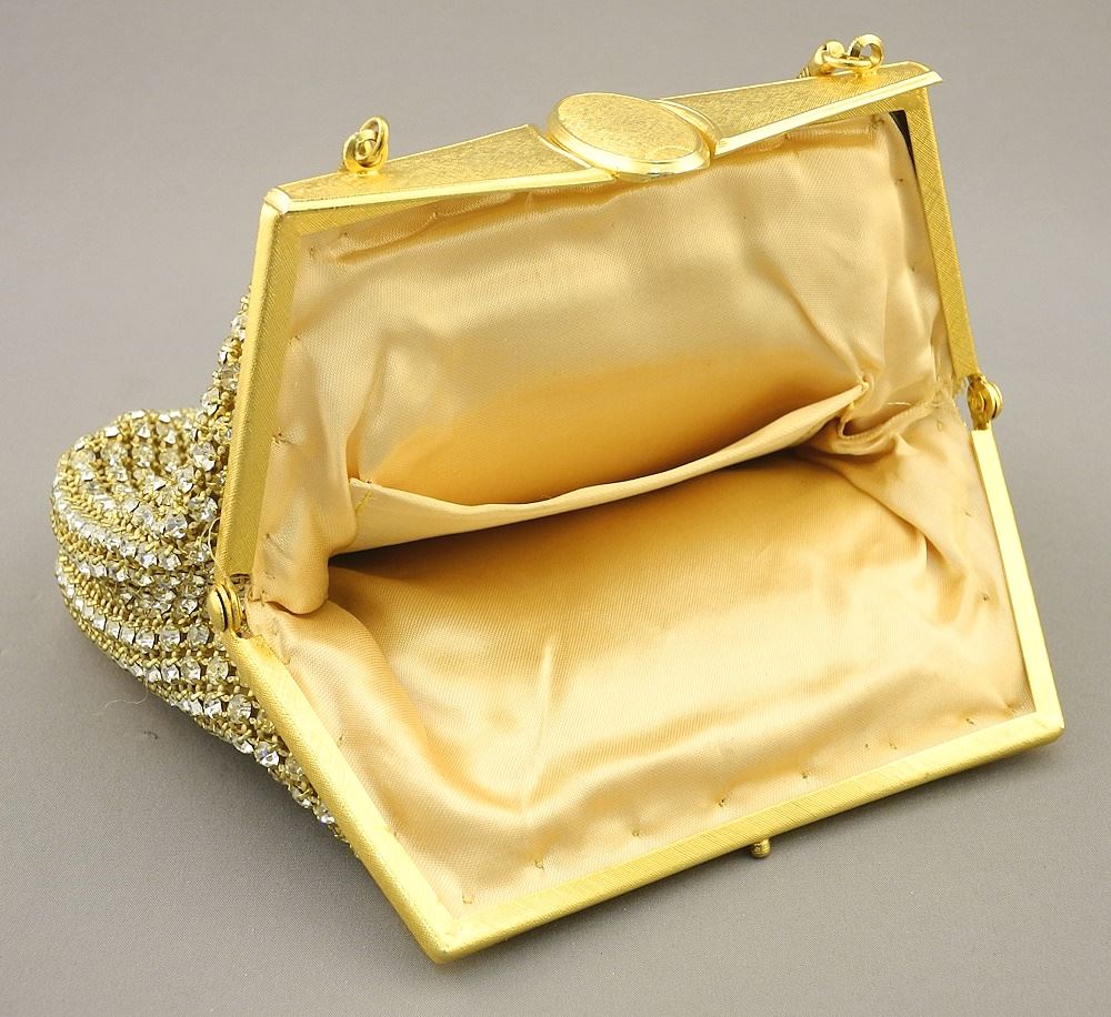 LOT 217 Vintage DuVal Gold Tone Rhinestone Handbag, 6 1/4"W. Estimate: $80 - $100 Sold For: $80 Auction Date: Tuesday, December 05 2023 at 4:00 PM
