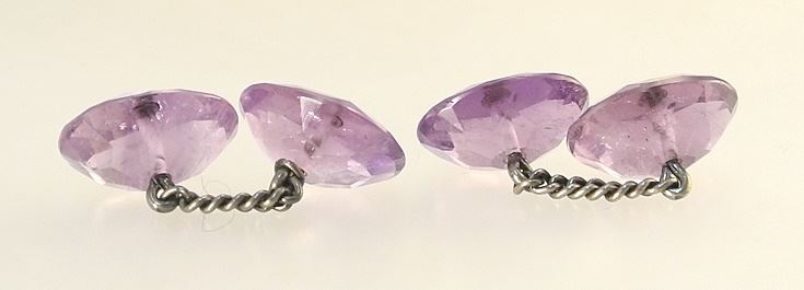 LOT 181 Pair of Faceted Amethyst Cufflinks with Silver Findings, 7.0 Grams, with Box. Estimate: $150 - $250 Auction Date: Tuesday, December 05 2023 at 4:00 PM