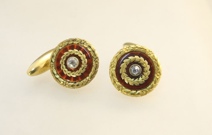 Pair of 9ct (tested) Gold Diamond & Red Tail Cufflinks with Gold Findings, 7.7 Gms, in box.