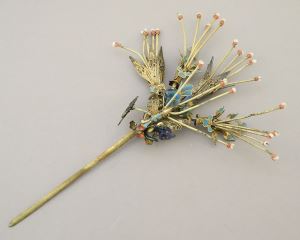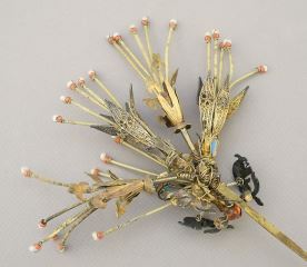 Chinese Kingfisher Feather Hair Ornament (as found), No Export.