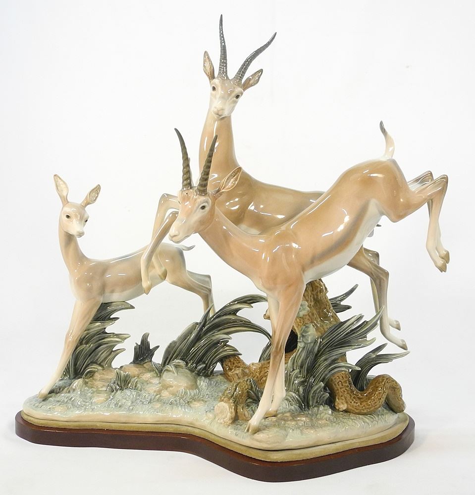 LOT 61 Lladro "Gacelas de Grant" Figurine with Stand & Certificate, 19 5/8 x 21 x 11 1/2". Estimate: $400 - $600 Sold For: $350 Auction Date: Tuesday, December 05 2023 at 4:00 PM
