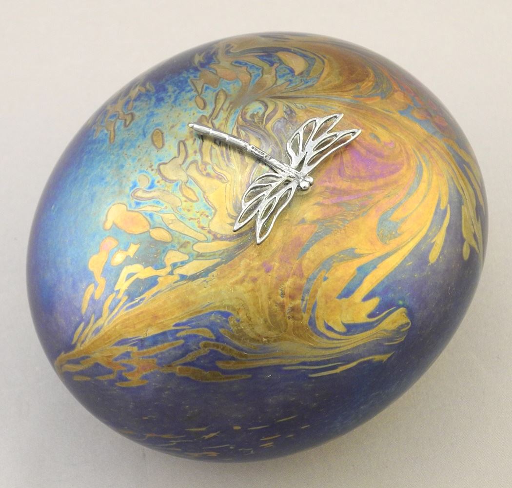 J. Ditchfield Glasform Paperweight with Hallmarked Silver Dragonfly.